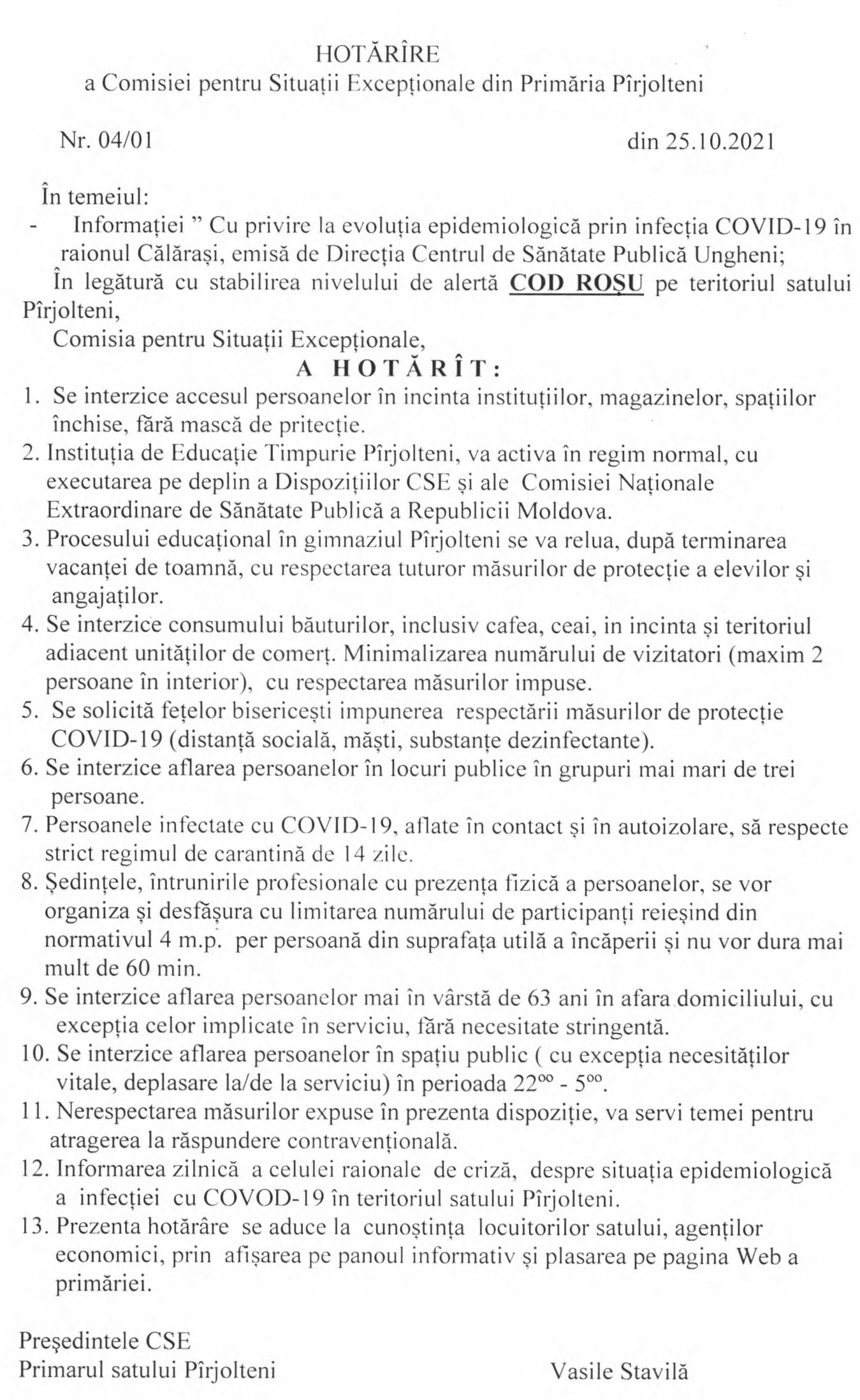 Hotărâre nr.04/01 din 25.10.2021