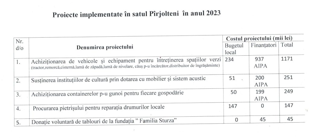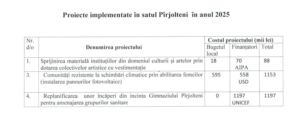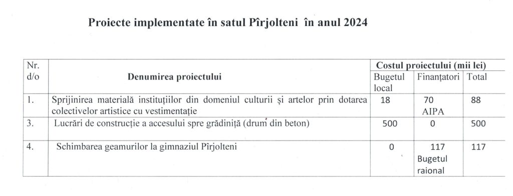Lucrări de reparații capitale a clădirii administrative a primăriei Pîrjolteni. Costul total – 151000 lei.